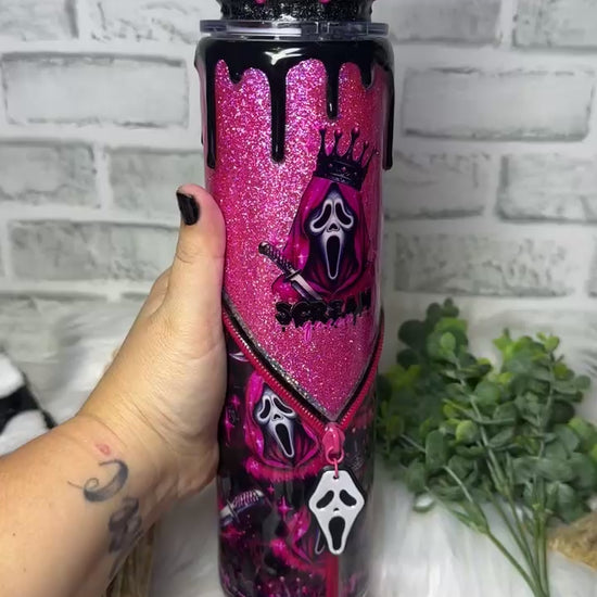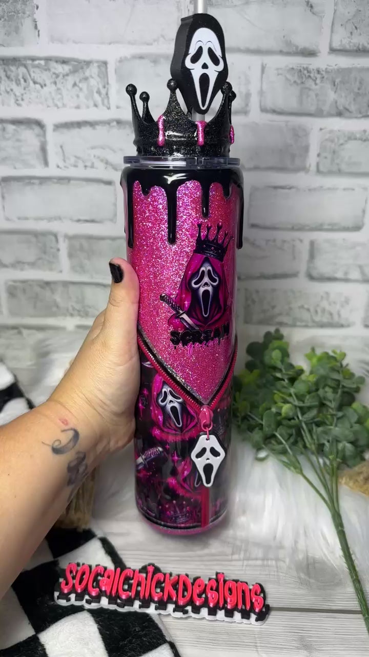 RTS {Scream Queen with Zipper, Charm, Snow Globe Bottom & Crown Lid Topper} 30oz Skinny