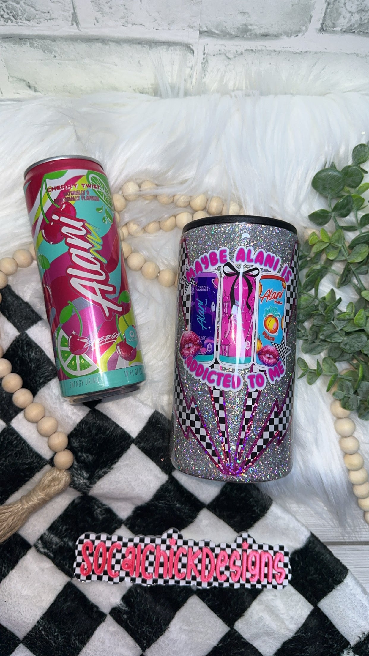 RTS {Energy Drink - Addicted To Me with Snow Globe Bottom} Slim Can Koozie